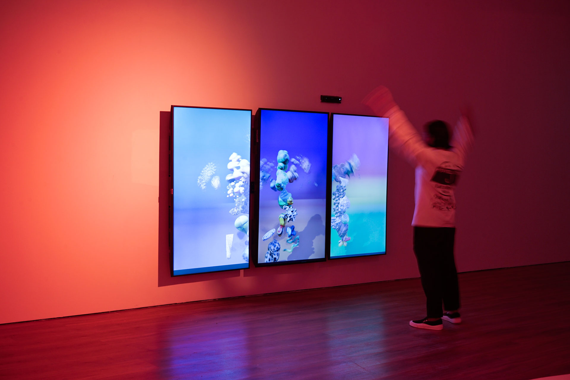 Collaboration between artist collective "Tromarama" and Festivo, with the installation name "40ÂșC Fable (2021)". A motion sensor activation art for up to 6 people at the same time. Utilizing Kinect with Unreal Engine to produce a self mirror-like experience in front of three monitors setup. Displayed in Museum MACAN on December 2021 to May 2022.