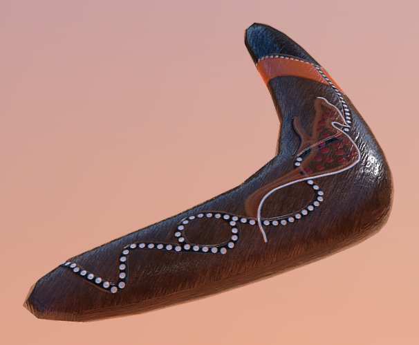 I was walking down the Queen Victoria Market in a morning where merchandise were sold and I saw various sized boomerang with unique painting on it. Inspired by the traditional painting style, this model is my attempt to recreate it.